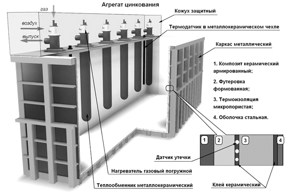 Схема устройства агрегата цинкования с применением газовых нагревателей