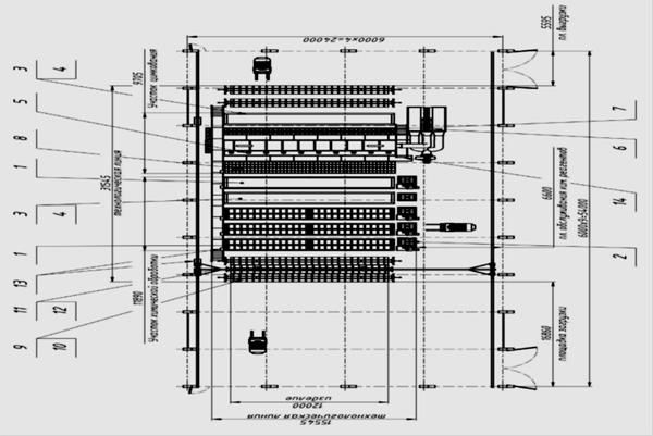 1.1.7 Возврат технологических траверс. Порожние технологические траверсы, ТТ, краном с контртраверсой, КТР, перемещаются в начало технологической линии на Стойки модуля навески, СН, для повторного использования.