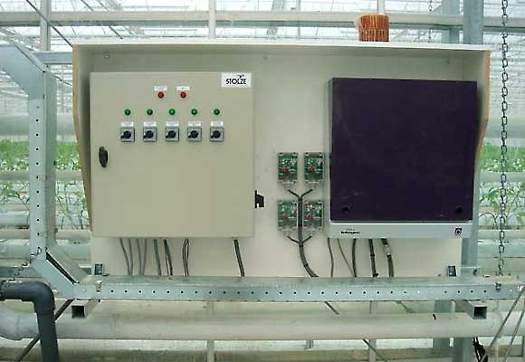-Программное обеспечение. Программа управляет вентиляцией, защитными экранами, системой отопления, туманообразования, подачей удобрений и другими элементами. Данный контроллер имеет способность к расширению как программного, так и аппаратного обеспечения. Включает чтение данных от четырёх внутренних станций температуры и относительной влаги, а также метео-станции. Метео-станция состоит из сенсоров температуры, радиации, дождя, влажности, направления и скорости ветра.