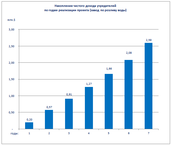 Общий период внедрения проекта по строительству и оборудованию завода по розливу воды составит 12 месяцев. За данный период будут поставлены и смонтированы производственные линии, сформирован штат проекта.